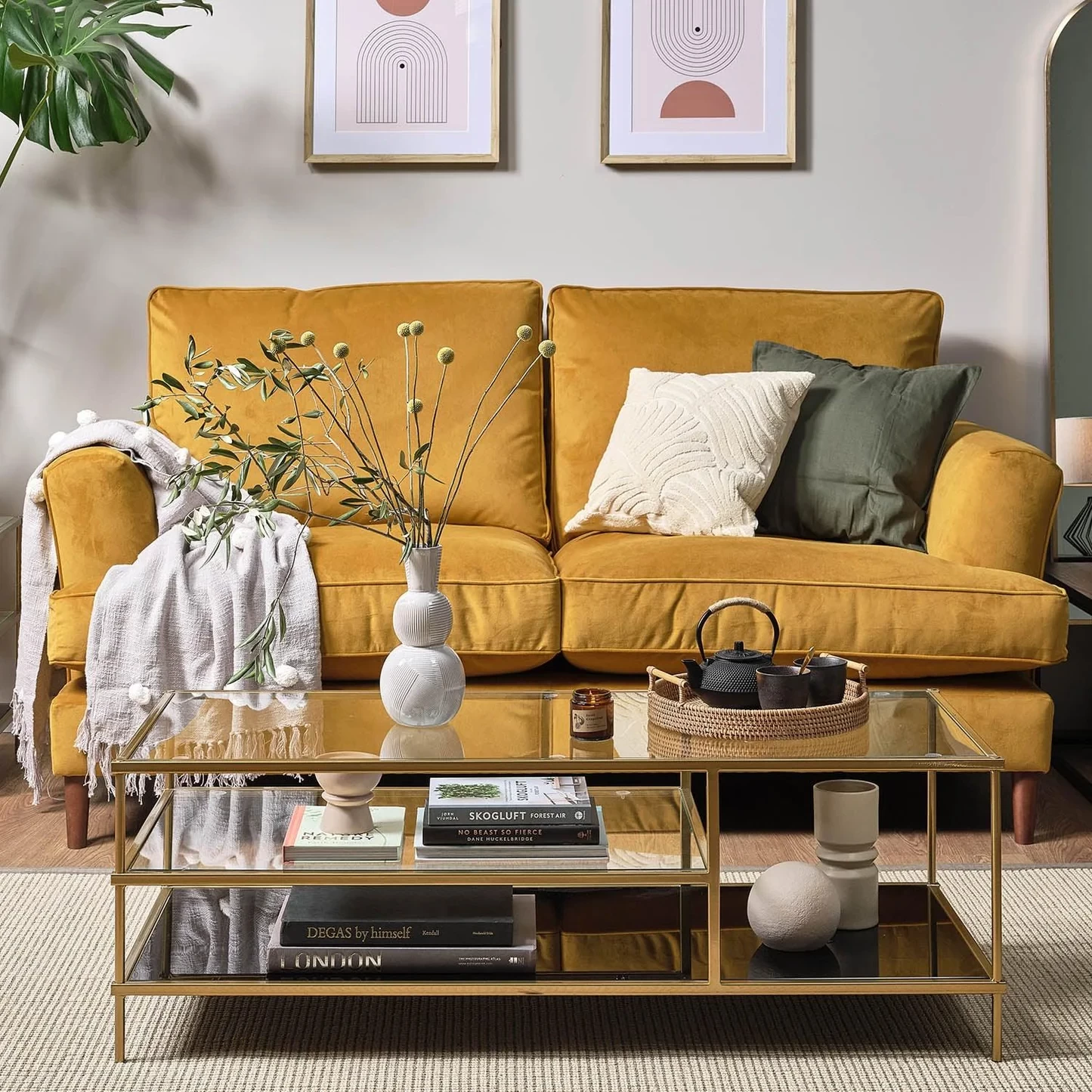 Coffee Table Dimensions H40cm L120cm W50cm Floor To Underside 6.5cm Coffee Table Frame Material Powder-coated-steel Tabletop Material Tempered glass Product Weight 24kg Max Weight Capacity 60kg Special Features Art-deco antique brass effect frame Spare Parts Available upon request Self Assembly Required Yes |