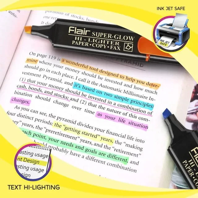 This set includes four bright highlighters for marking important text. Fluorescent ink ensures clear visibility on any page. Chisel tip allows for broad and fine highlighting. Long-lasting and smooth ink flow. |