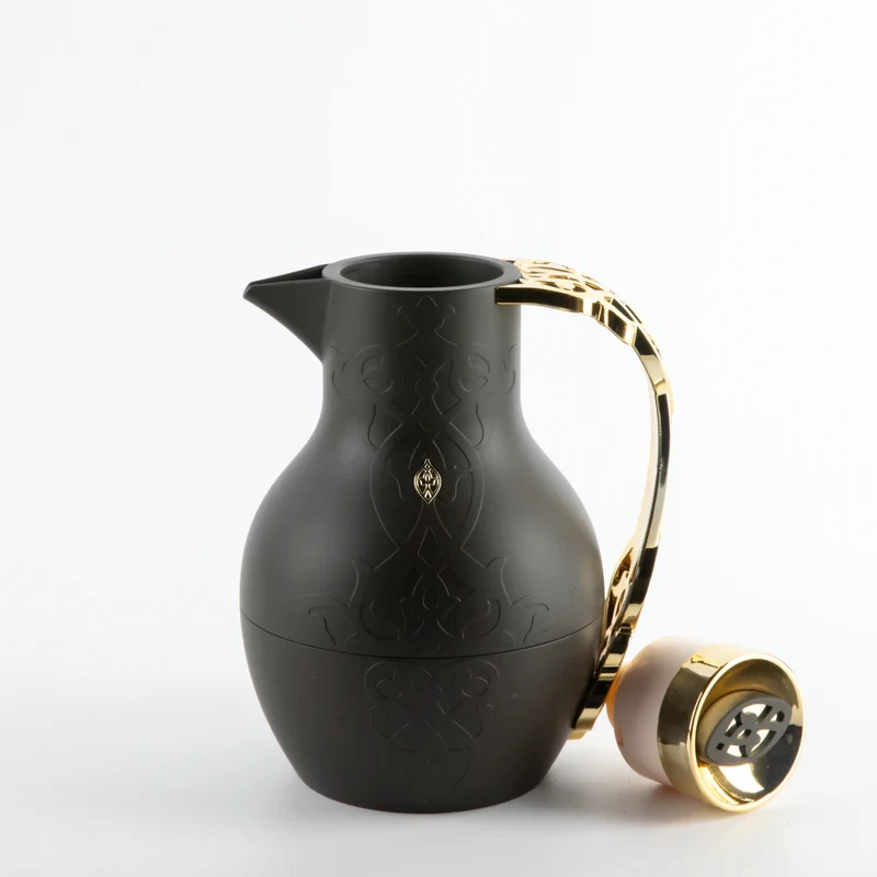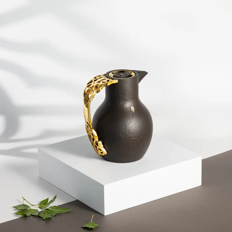 Enjoy your hot beverages in style with this elegant vacuum flask. The dark brown and gold design brings a rich and sophisticated look. Its 1-liter capacity keeps tea or coffee hot for hours. Crafted from high-quality materials for lasting durability and performance |