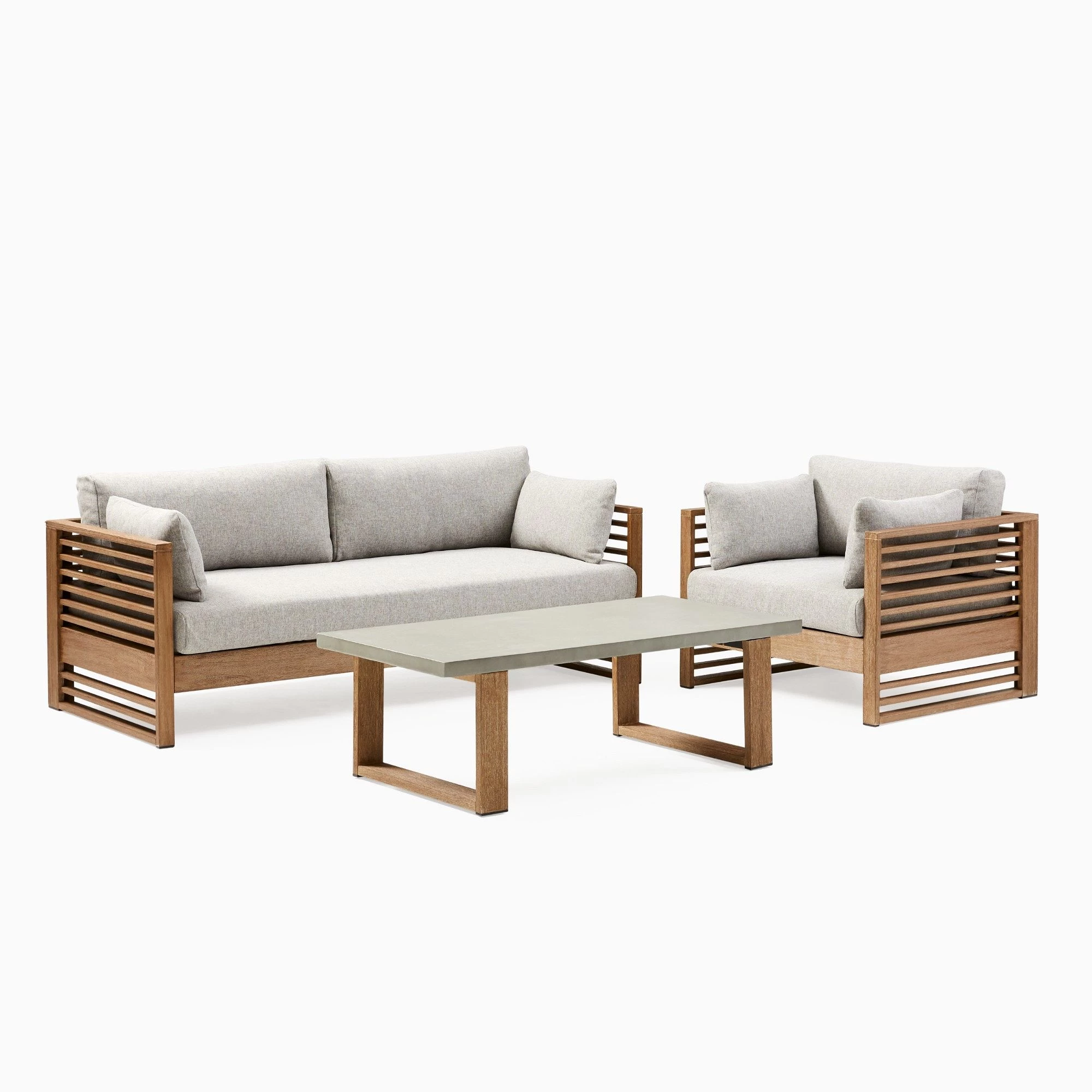 Santa Fe Slatted Outdoor Sofa (75"), Lounge Chair & Portside Concrete Coffee Tab